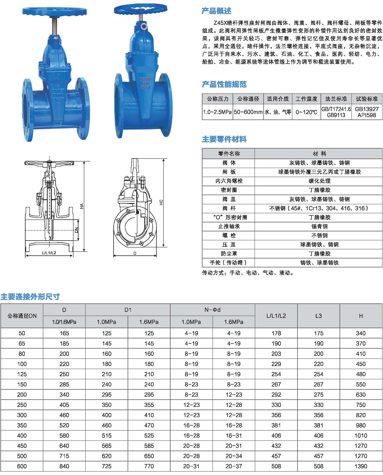 公(gong)稱壓力:1.0、1.6、2.5MPa