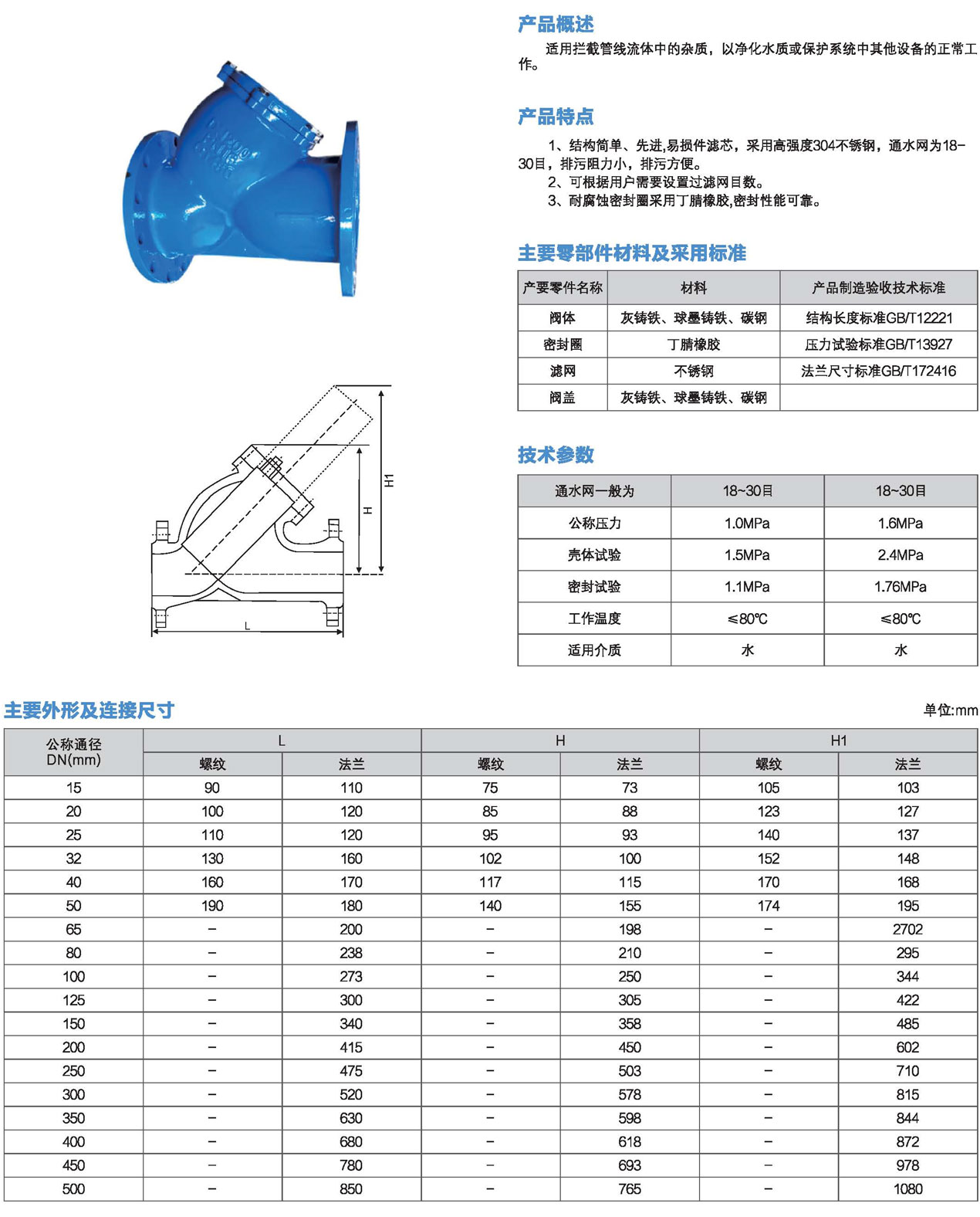 口徑:DN15~DN500mm